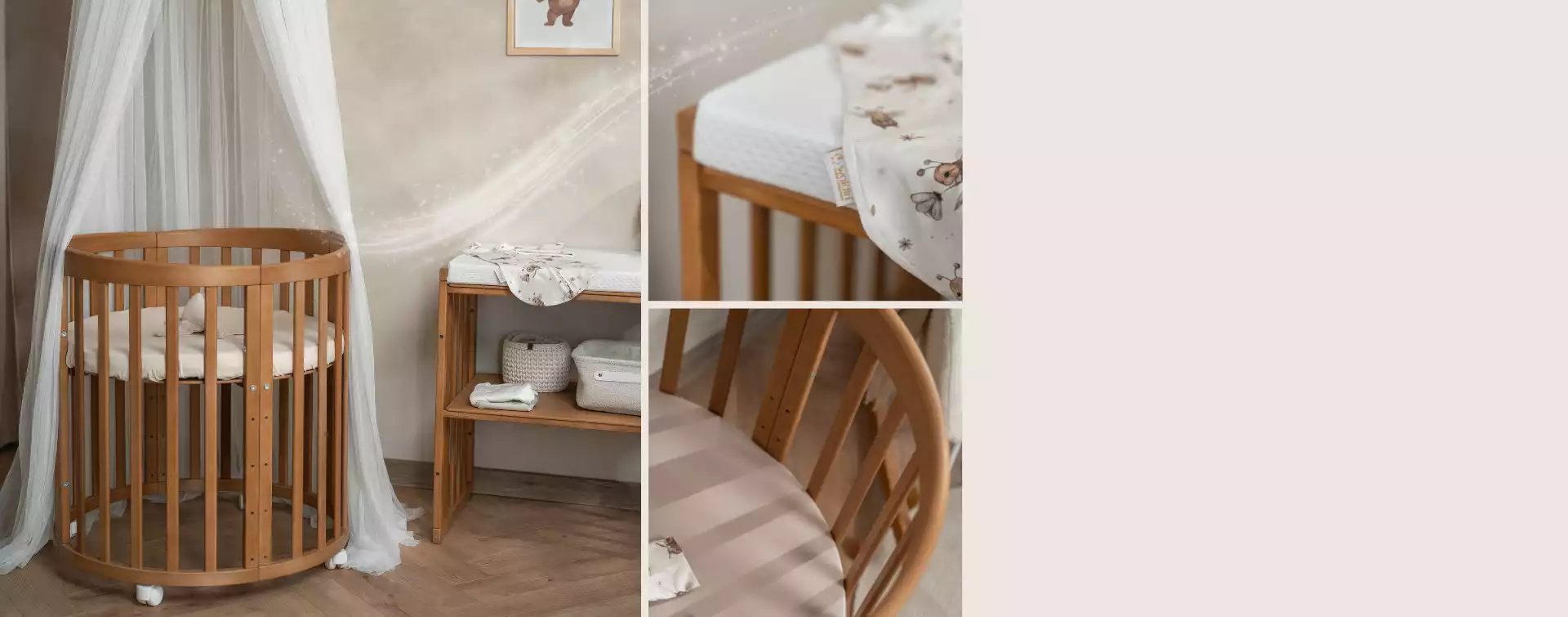 We focus on nature, using only safe and durable raw materials. Our cribs are not only stylish but also functional – they grow with your child!